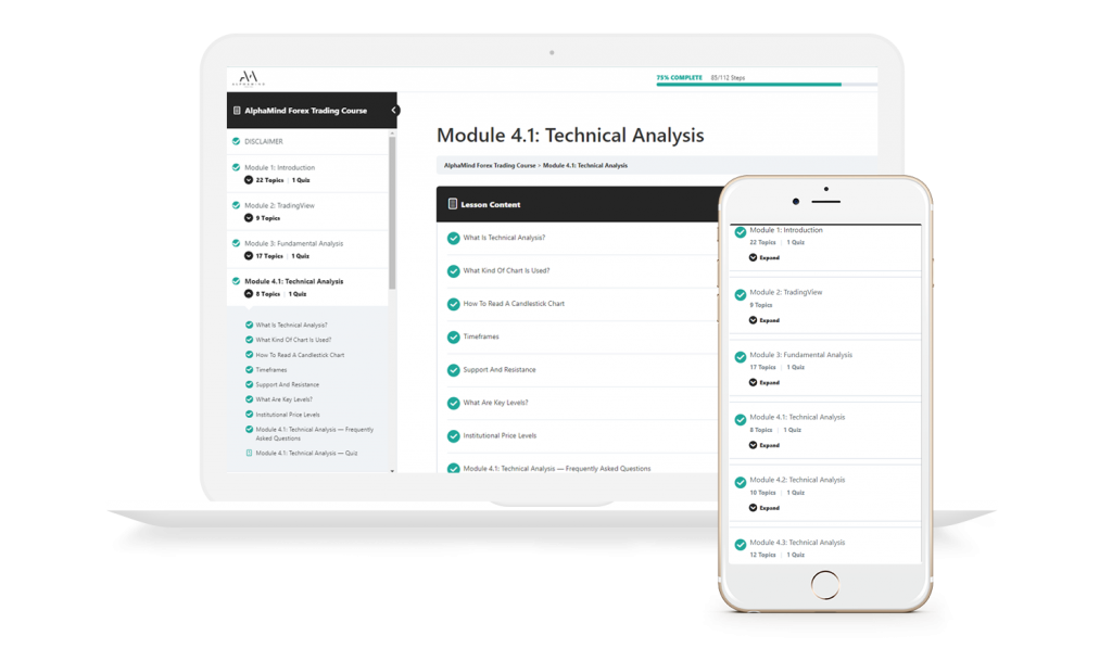 Designed for both auditory and visual learners, the AlphaMind Trading Course is comprised of over 150 instructional videos; each filled with diagrams and images to easily explain complex topics.